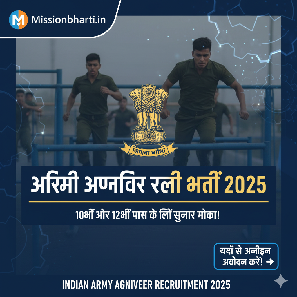 नमस्कार दोस्तों! आपका स्वागत है Missionbharti.in पर। भारतीय सेना (Indian Army) ने अग्निवीर योजना के तहत जनरल ड्यूटी, क्लर्क, ट्रेड्समैन
